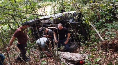Preview В Абхазии в Ткуарчалском районе автомобиль с российскими туристами сорвался в пропасть, погибла женщина.